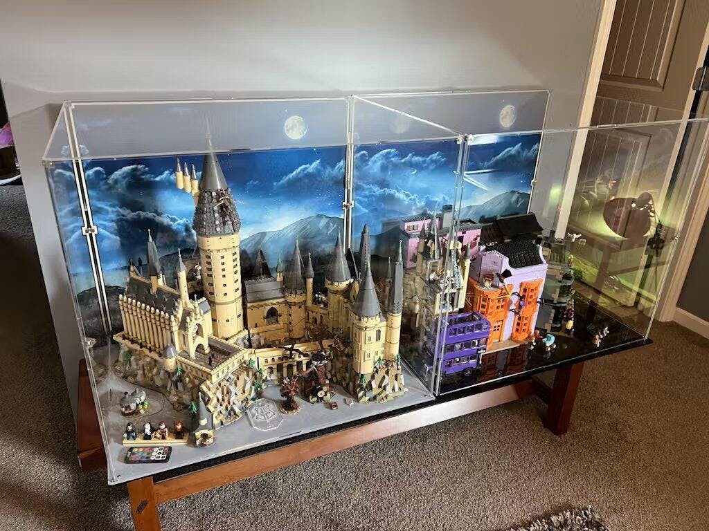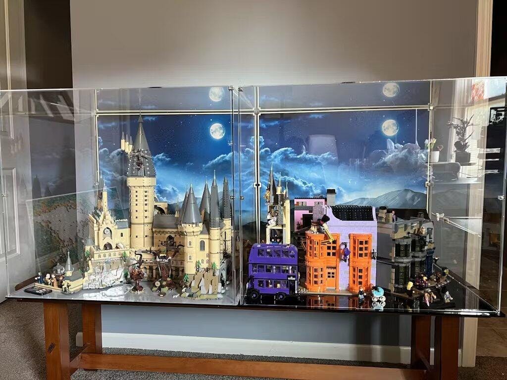 The LEGO® Harry Potter: Hogwarts Castle set is one of the most sought after sets in the LEGO® Harry Potter series. Its a massive set comprising of 6020 pieces, 4 minifigs and 27 microfigures. A set of this calibre deserves a premium storage solution. Shield your set from being knocked or damaged and keep it dust free with our crystal clear Acrylic display case. Magically upgrade your display to make it the centrepiece of your collection with our bespoke custom background option. Our scenic moonlit backdrop is UV printed straight onto the acrylic back piece and helps to bring your iconic Hogwarts Castle to life.